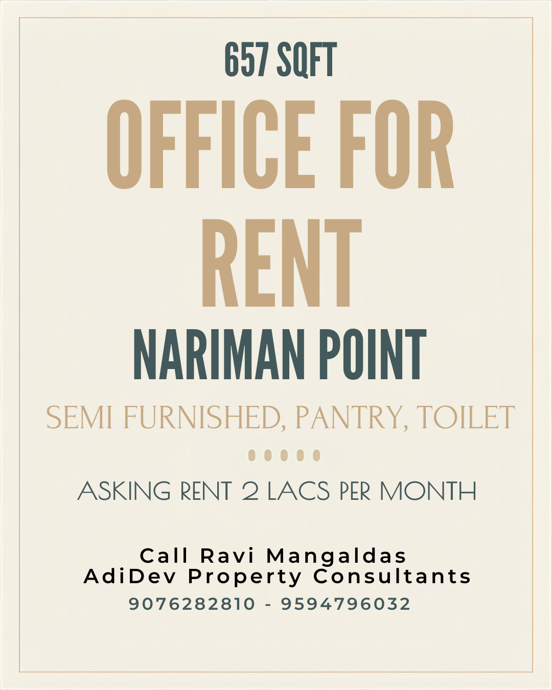 J.S.S Road Girgaon, (Prime commercial location). Office 1: 450 sq. ft. carpet area floor 1. Rent: 55K per month Deposit:…